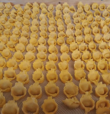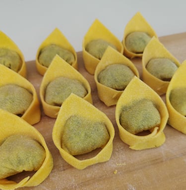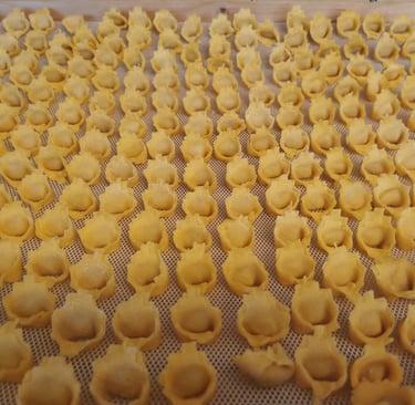 (a scelta fra Tortelli, Cappellacci verdi, Cannelloni verdi, Gnocchetti verdi o di zucca, Lasagne, Tagliatelle al ragu o Rosette)