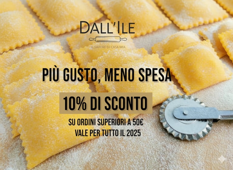 Voglio premiare i miei primi clienti. Per tutto il 2025, ricevi uno sconto del 10% su tutti gli ordini superiori a 50 euro. È l'occasione perfetta per organizzare una cena tra amici o una serata speciale in famiglia e scoprire la mia passione per i sapori autentici